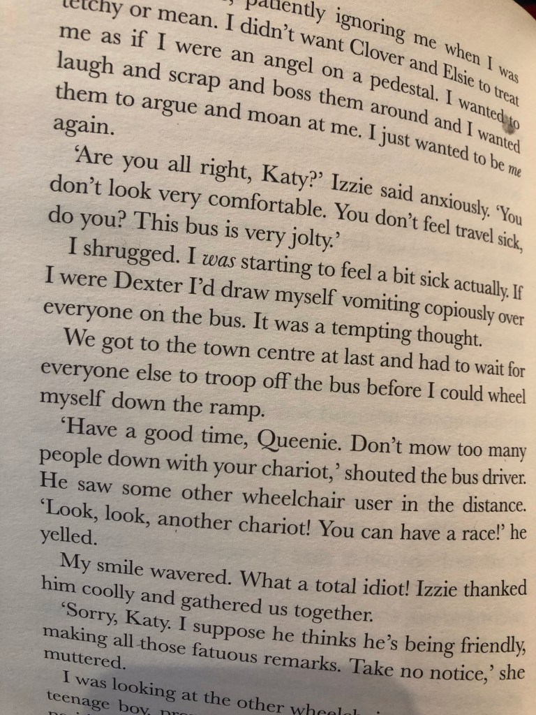 I long for a world where access requirements are considered as standard, where minority groups are understood in the widest terms, where I don’t hear people moaning about too many disabled spaces because they have some clue what it feels like to need one, where disabled presenters aren’t trolled for daring to express opinions. I want to read books which show my daughter that not every baby has ten fingers but that’s absolutely fine!