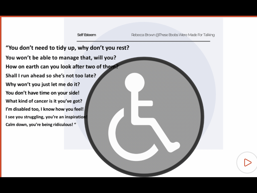 Life is pretty straightforward for me if I ignore patronising comments and access issues. Yet, as a disabled person in society I feel ignored and unwanted, whilst as a cancer patient I’m celebrated as a brave warrior. For now, I need to sleep…..