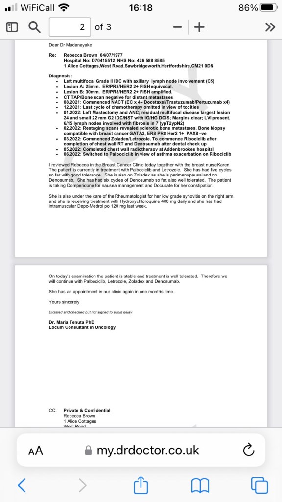 This week I can’t be bothered anymore. I’m sick of being sick, of endlessly monitoring symptoms, of being told I’m tolerating the treatment well. I’d love a week off. I fill in a ridiculous medical questionnaire for a potential holiday. Treatment is intended to improve quality of life. Really?!