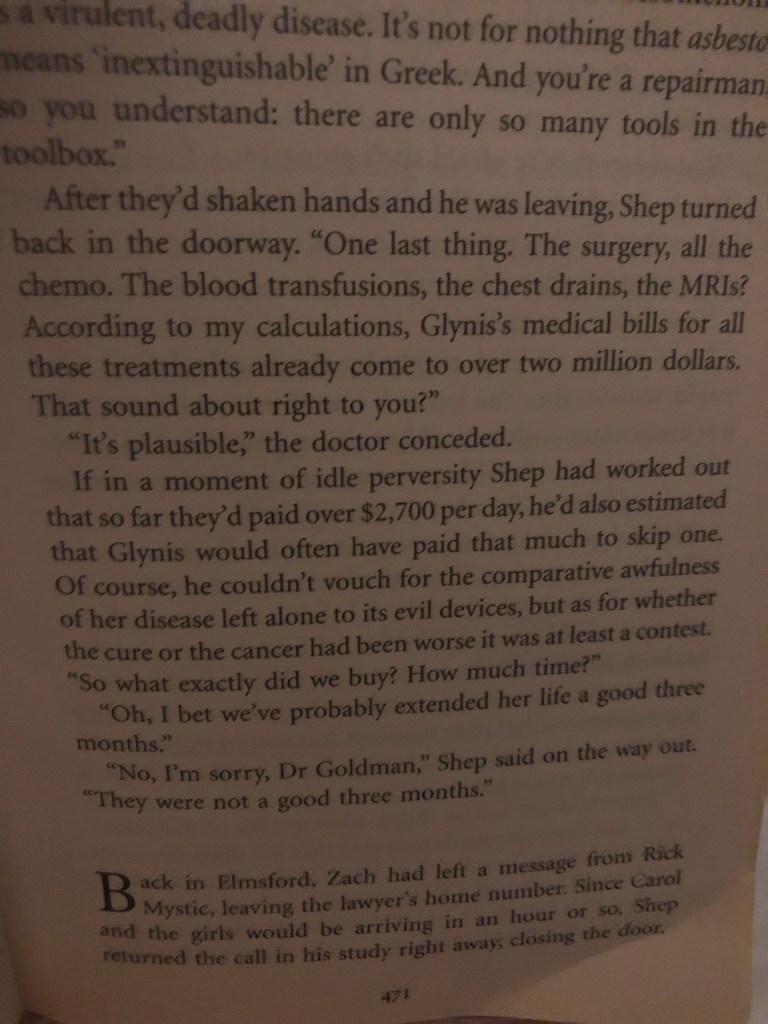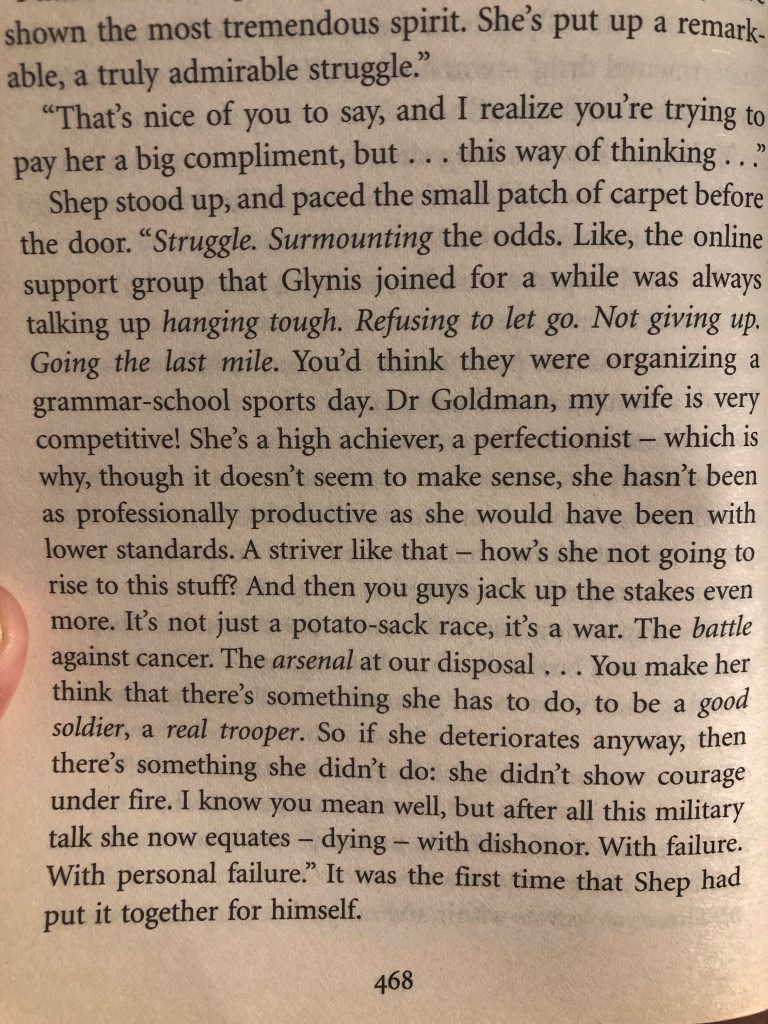 Lionel Shriver documents in excruciating detail the decline of a person with terminal cancer, in part as an apology for not being there enough for a friend in this situation. Support dwindles over time, as people are frustrated by the protagonist refusing to engage in heart to hearts that make them feel better. Full of biting dark humour, I’ve never read a more shocking portrayal.