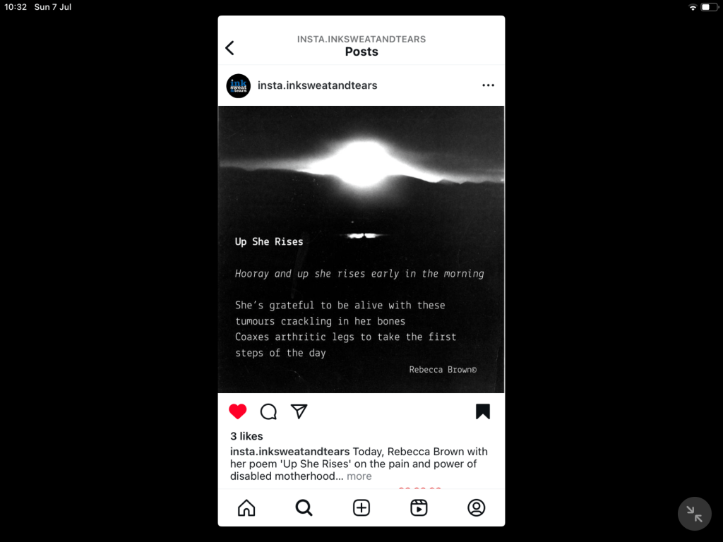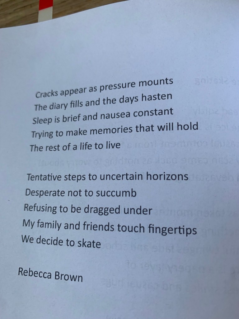 But it’s been a hard-won success. Looking back at early poems, I’m struck by their rawness and returned to the horror of chemo and its myriad side effects. I’m reminded of the dozens of rejections and unliked social media posts. It’s only in this last month that I could honestly say I feel happy, with stable tumours, minimal symptoms and lessening anxiety.